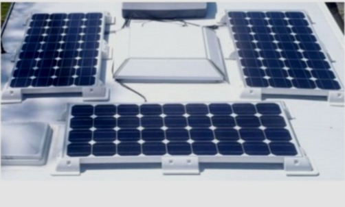 Kit including 4 corner supports + 2 straight + 1 double cable gland in plastic material for fixing a photovoltaic panel on the camper roof. They can be used with any photovoltaic module with an aluminium frame. Suitable for installing one panel or 2 panels side by side.