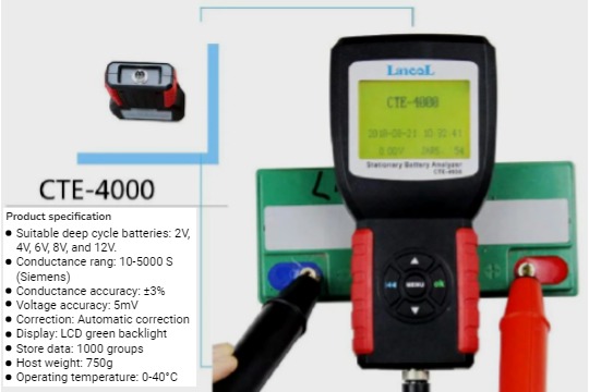CTE-4000 is immoveable battery analyzer that measures electroconductivity and voltage of hermetic 12V lead-acid batteries for security systems, emergency lighting, mobility vehicles, uninterruptible batteries and power supplies to identify those that: